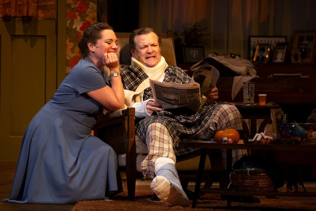 We get it. This is the playwright’s memory, and the strong set design (Starlet Jacobs) and costuming (Elizabeth Saylor) are unmistakably the 1970s, without falling into parody. Such a grounding is needed for the antics that are about to follow! It all happens in Ivoryton Playhouse, in South Central Connecticut, south of Hartford, an old but well-maintained theater with comfortable seating, a New England gem that punches above its weight.